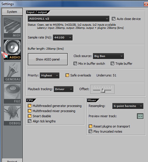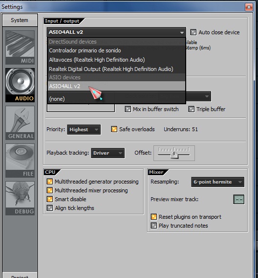 y cambiamos la confiracion a ASIO4ALL.
